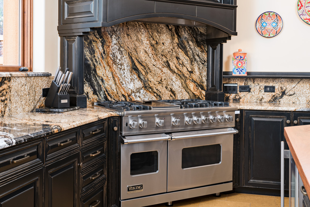 including a Viking six-burner gas range, double ovens and a wine fridge. You’ll find plenty of