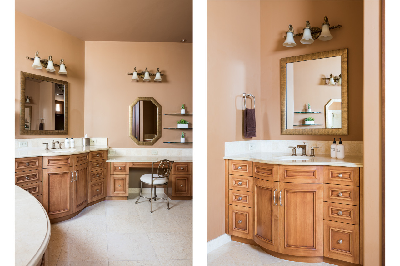 features dual vanities, a large soaking tub and separate shower.