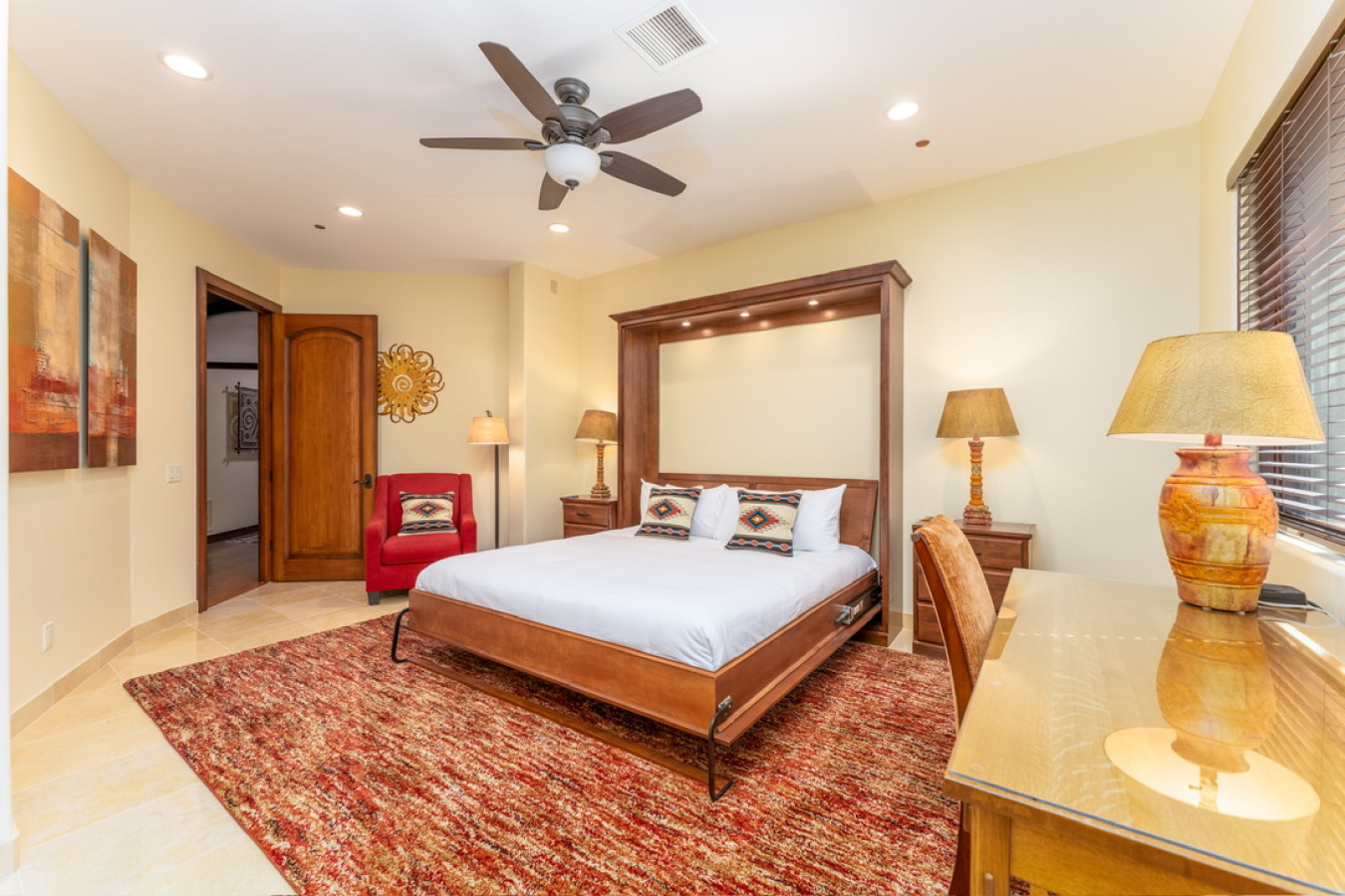 Bedroom 5 (upper level) – King bed, 55” Smart TV and a desk/workstation.