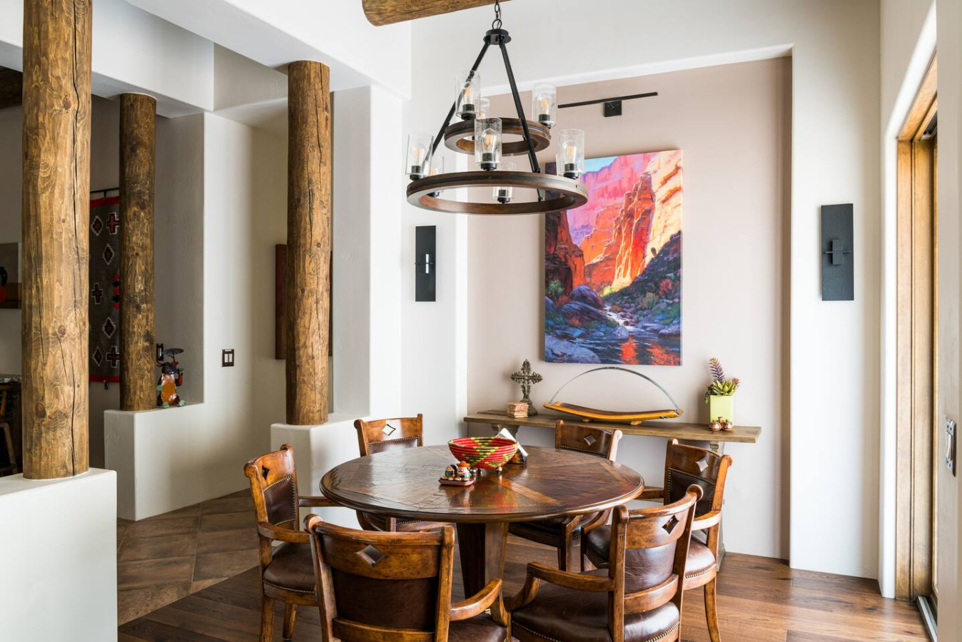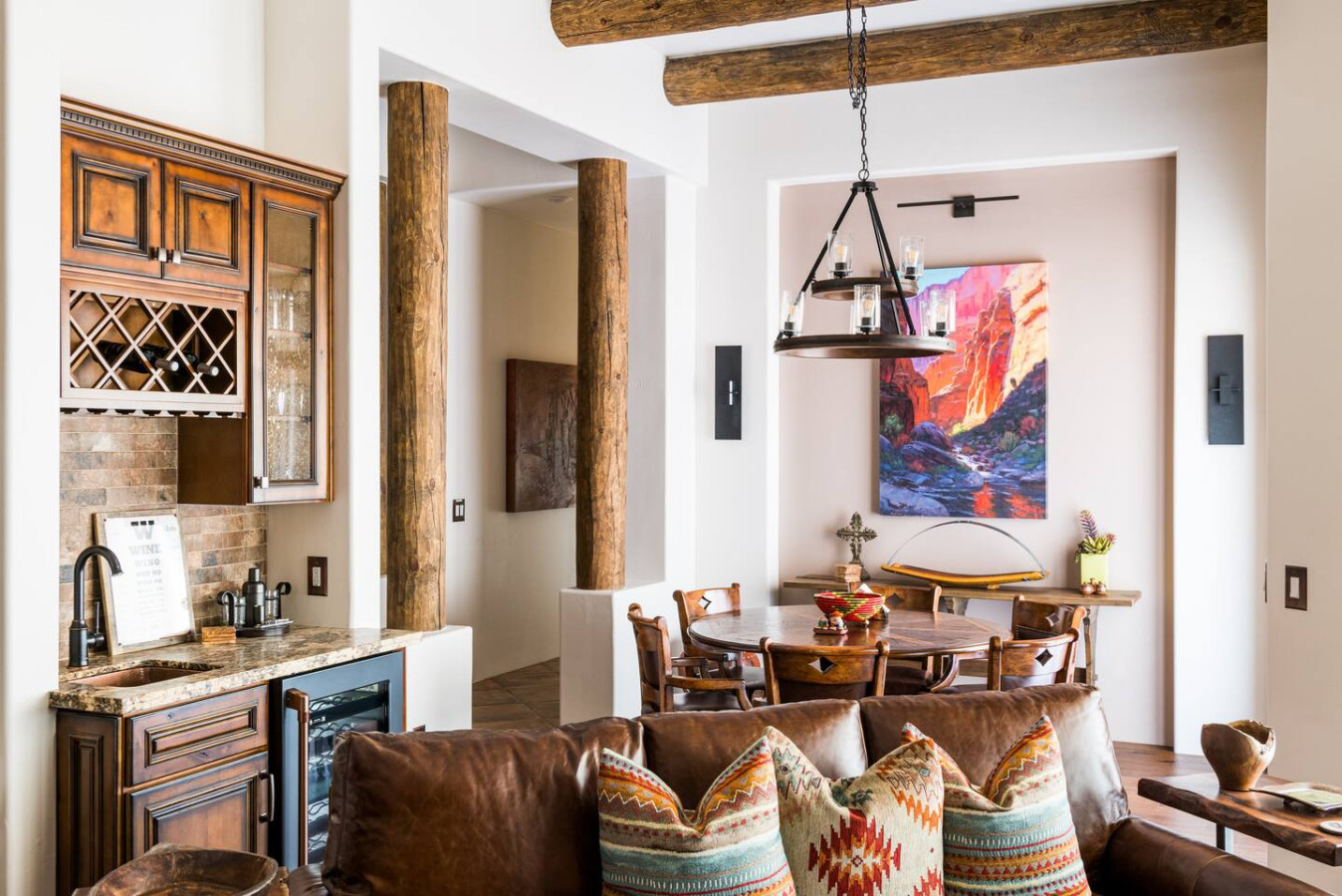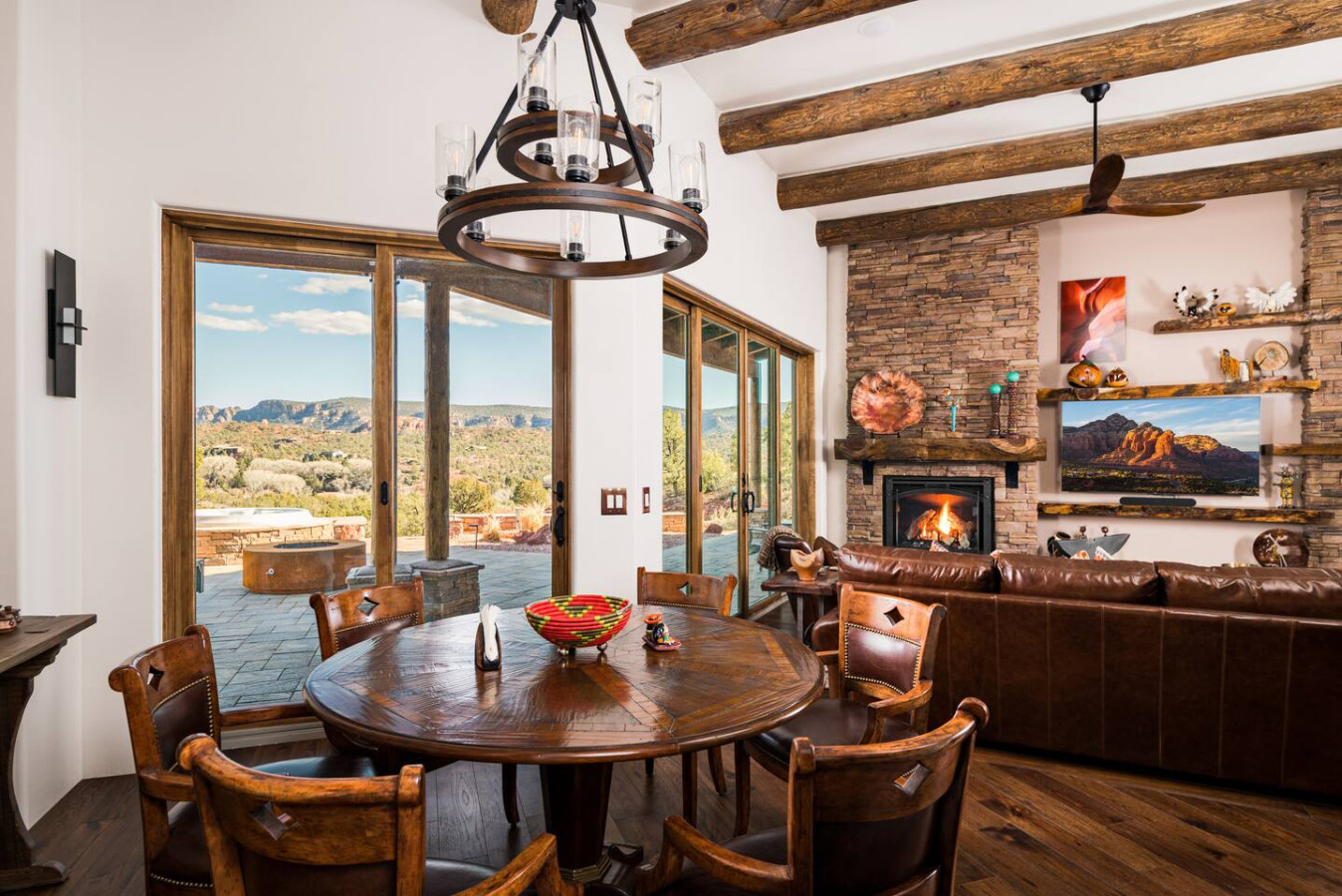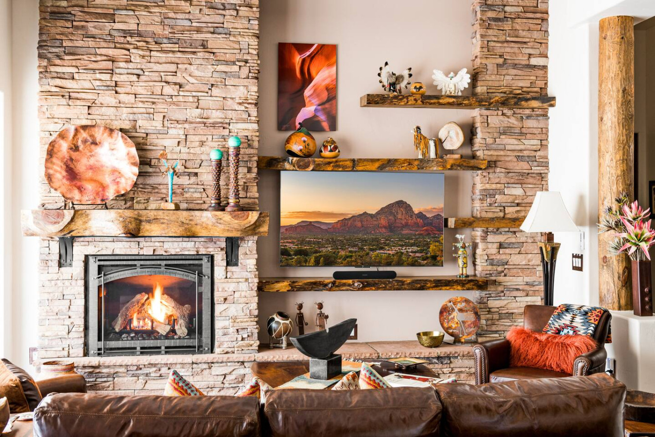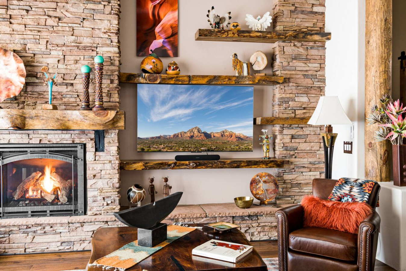 Step into a world of artisan craftsmanship and warm southwestern charm. From the beamed ceilings and stone accents to hand-picked textiles and indigenous art, every inch of this home whispers authenticity.