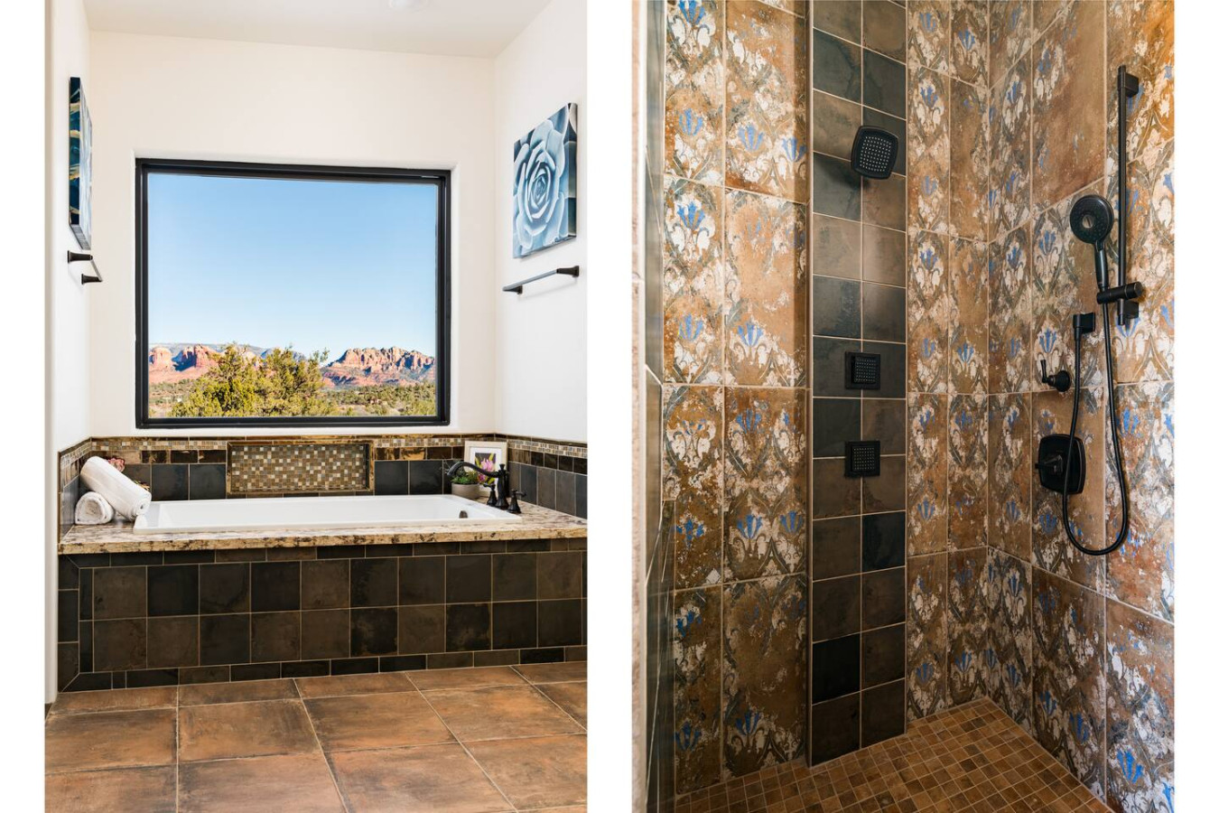 Spa-Inspired Bathrooms – Relax in the deep soaking tub framed by a panoramic red rock view or refresh in the tile walk-in showers with rainfall and body jets.