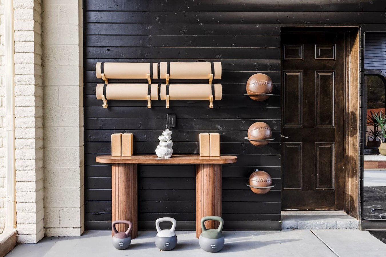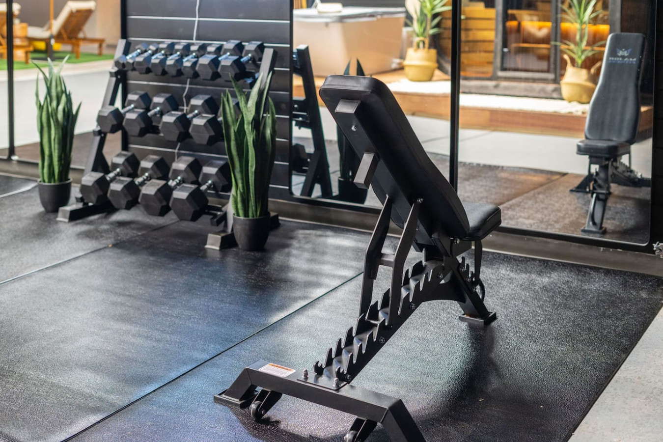✔ Equipped with free weights, bench, medicine balls, kettlebells, yoga mats, and yoga blocks