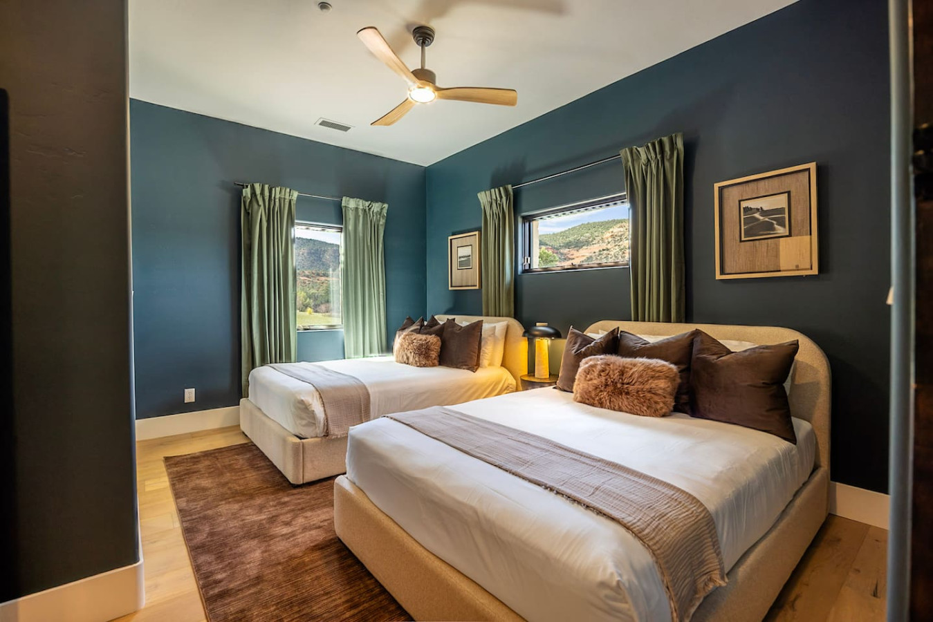 ✔ Bedroom 4: Two queen beds, walk-in closet, mountain views