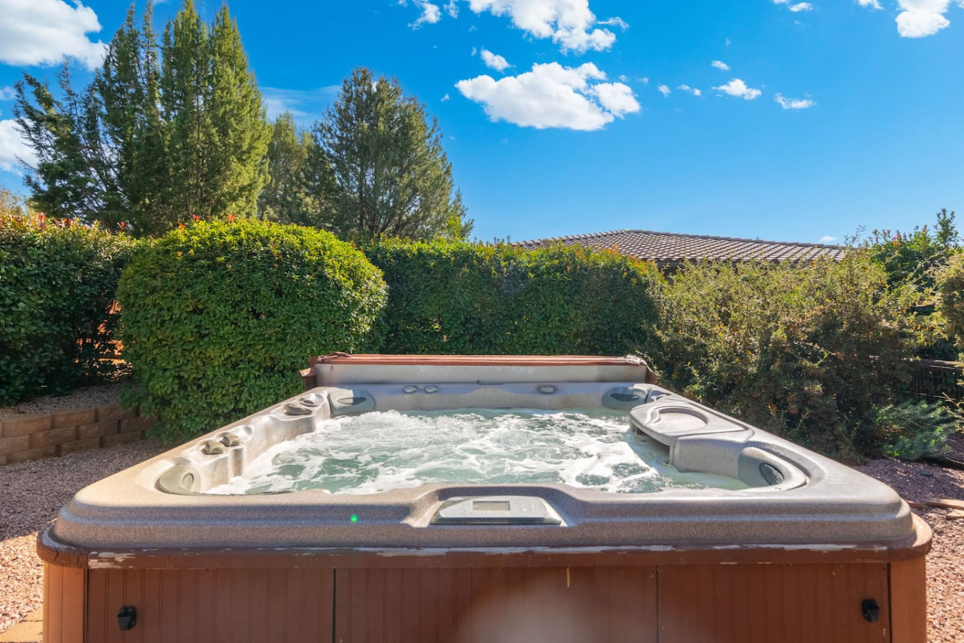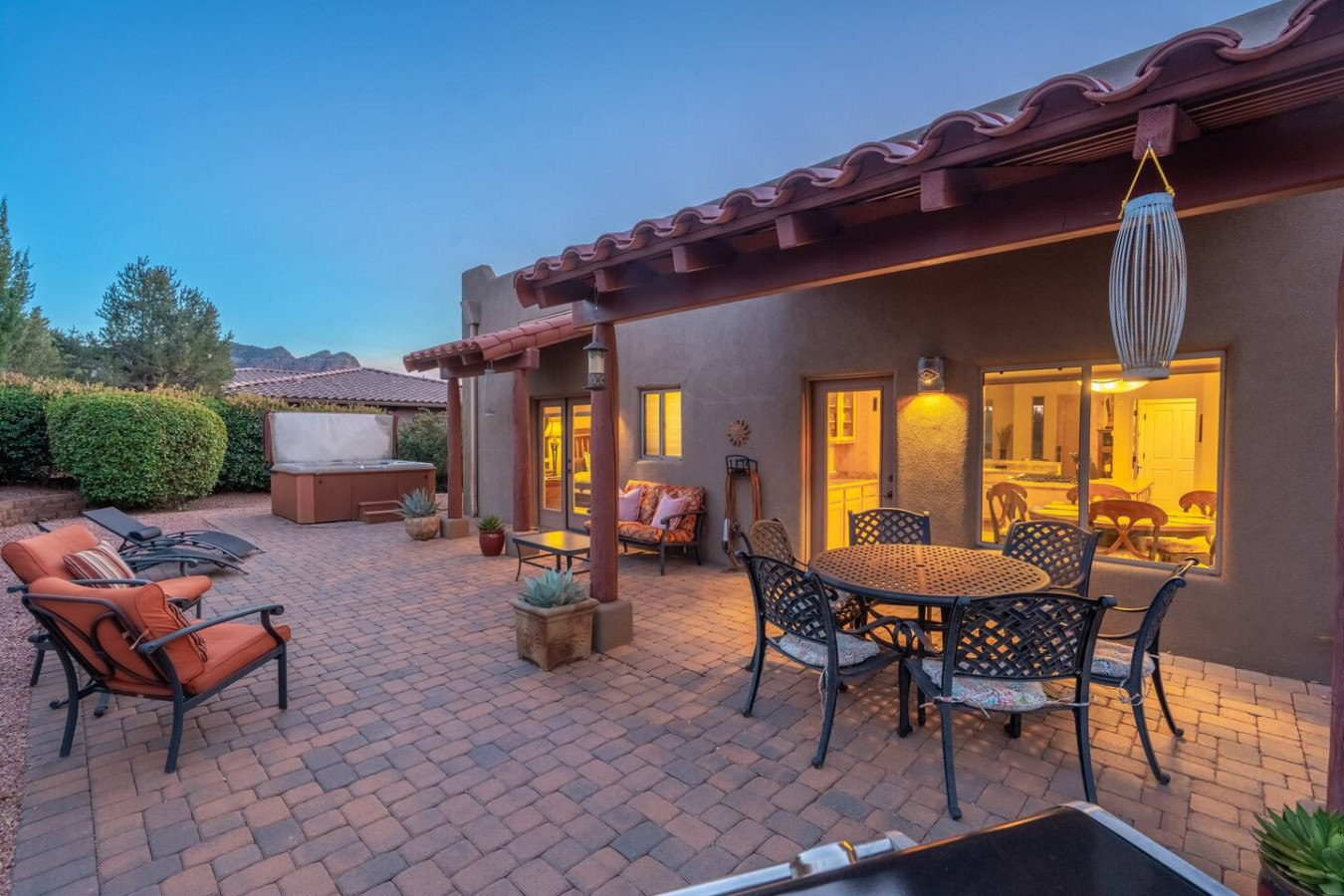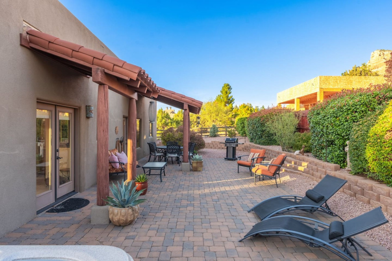 ☀ Private back patio with Hot Tub, BBQ, & lounge seating