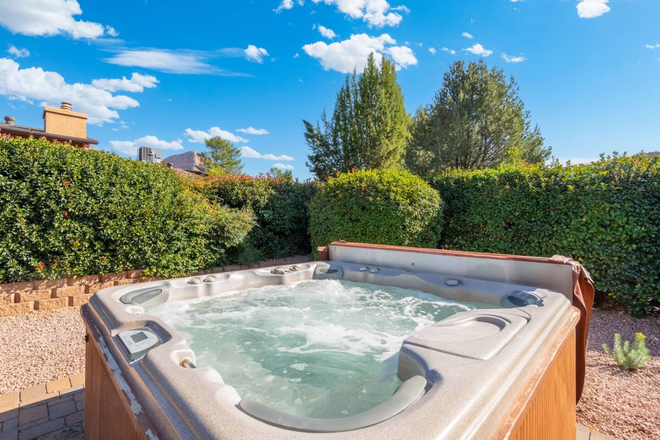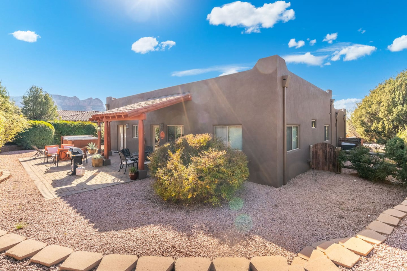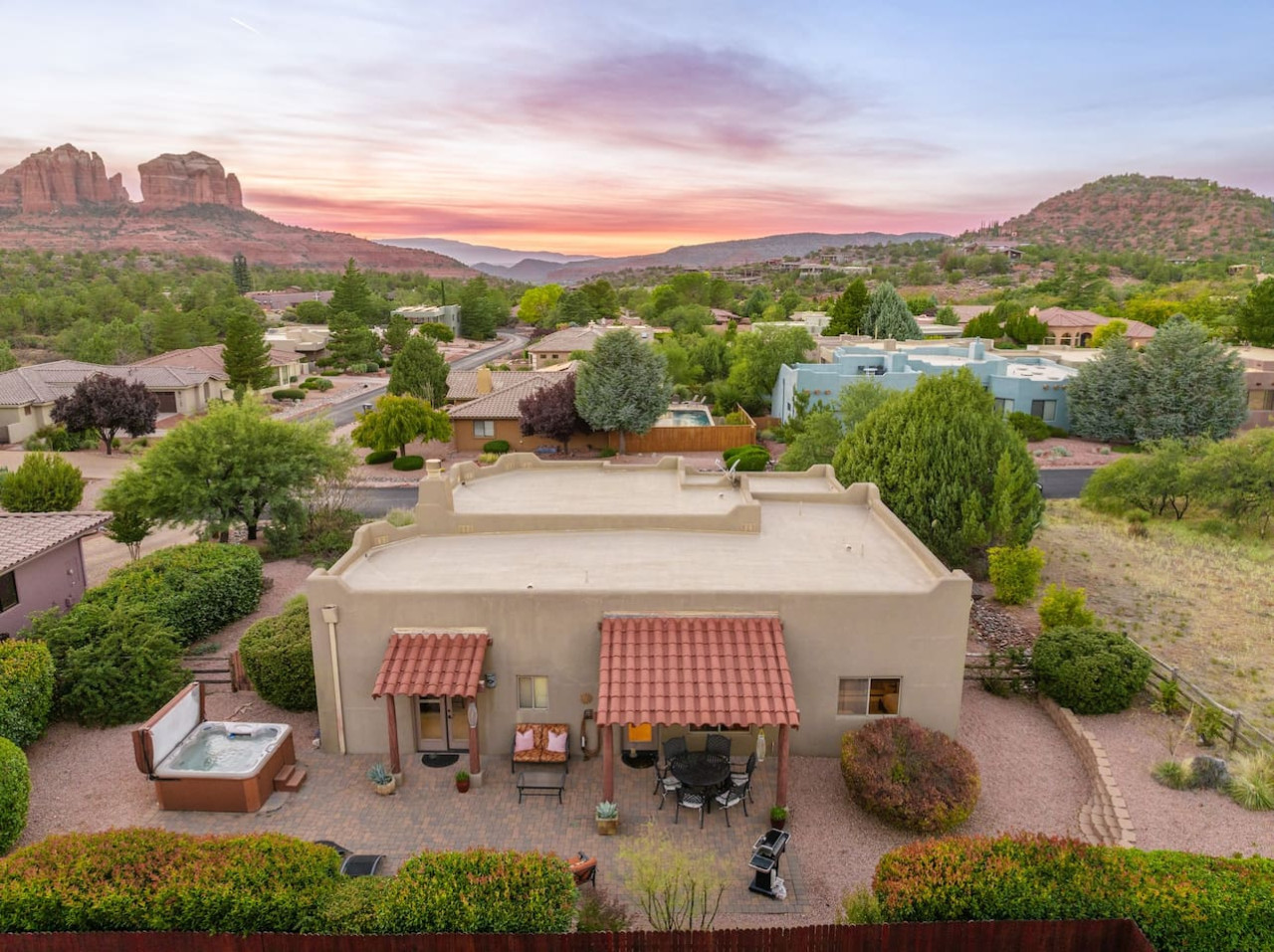This home is located in the Chapel neighborhood in central Sedona. This area is renowned for its breathtaking vistas, proximity to iconic landmarks, and a peaceful atmosphere that beckons travelers seeking a rejuvenating escape. The neighborhood is home to the awe-inspiring Chapel of the Holy Cross, a modern architectural marvel that seems to emerge from the very rocks that surround it. Nature enthusiasts will be in their element here, as the area provides easy access to some of Sedona's most acclaimed hiking trails. From the house, you can quickly access Cathedral Rock, Broken Arrow, Bell Rock, and Courthouse Butte, where panoramic views and mesmerizing landscapes await at every turn. In just a short drive, you can enjoy the restaurants and shops in Tlaquepaque Arts & Crafts Village, Uptown Sedona, and West Sedona.